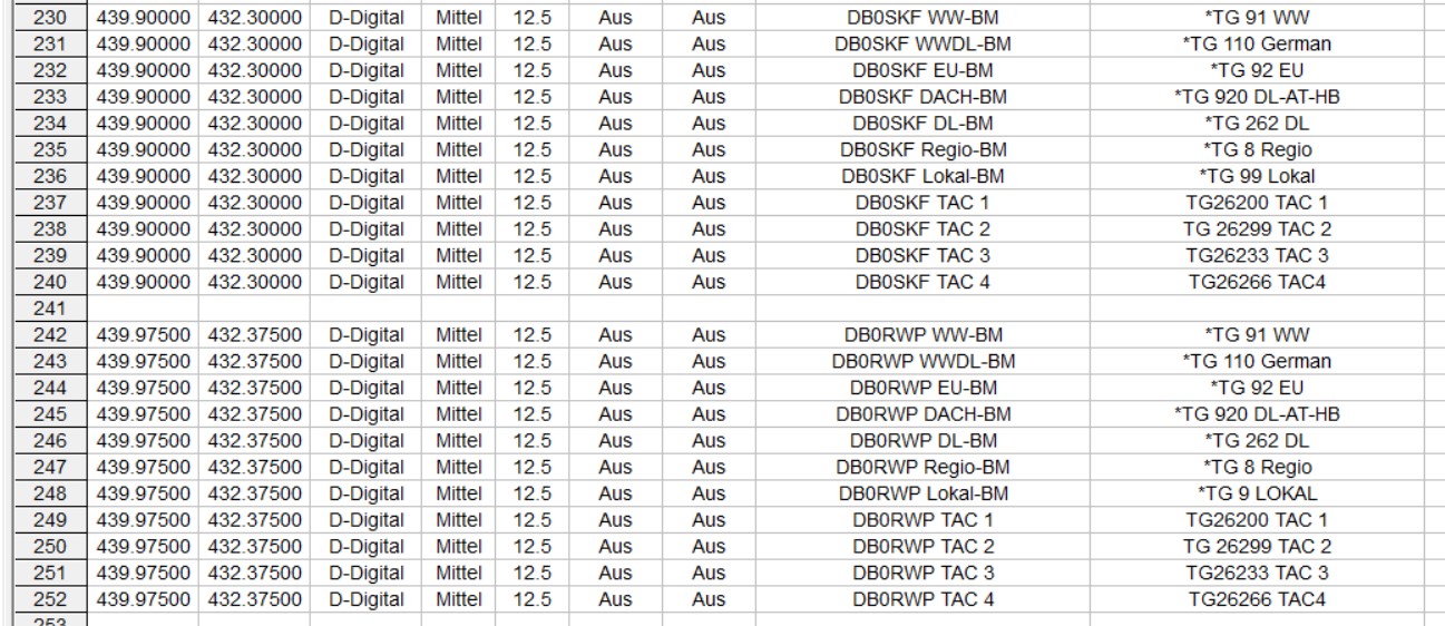 So um 2010 ist DMR das erste Mal in den Gesprächen aufgetaucht, damals ausschließlich mit den kommerziellen Geräten, die einen großen Aufwand zum Programmieren forderten. Man war ja auch noch nicht wirklich mit der Sache vertraut, sodass viel gegenseitige Hilfe notwendig war. Verschiedene Codeplugs als Vorlage gab es praktisch nicht und so musste jeder Stück für Stück die Struktur der Geräteprogrammierung sich aneignen, um überhaupt QRV zu werden. Talkgroup (Sprechgruppe), Timeslot (Zeitschlitz) waren alles noch Begriffe, mit denen man sich vertraut machen musste und auch die Zahl der Umsetzer war eher maumau als mau.